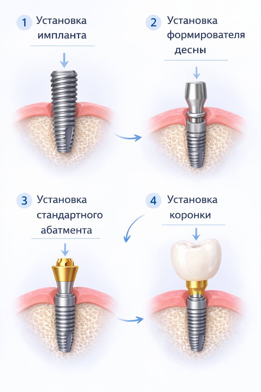 👉 Оптимальный вид имплантации определяется врачом на консультации после диагностики.