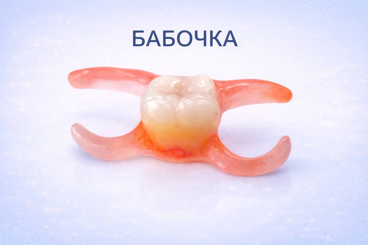 Если нужен временный вариант на 1–2 зуба — подойдёт протез-бабочка.
